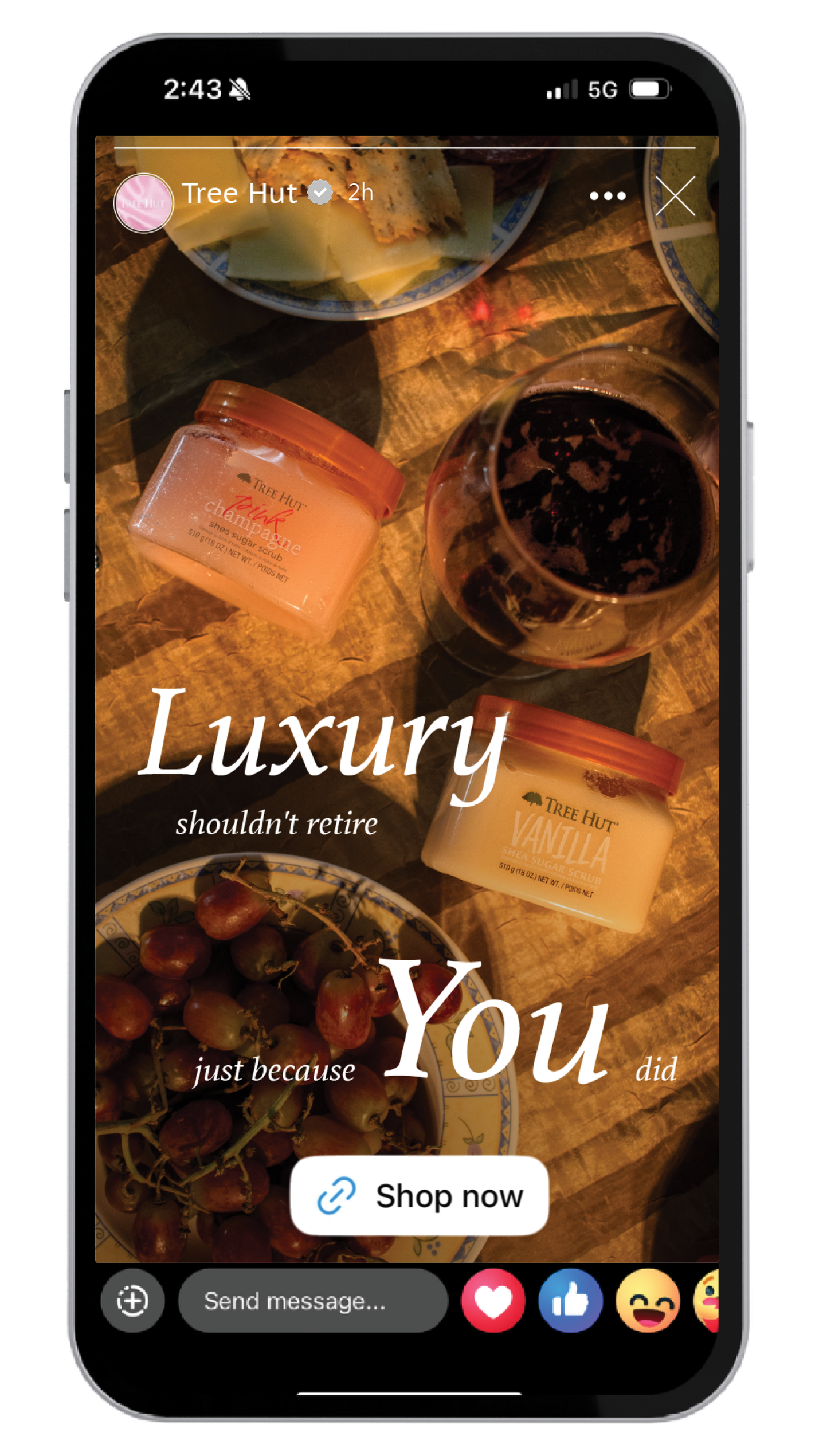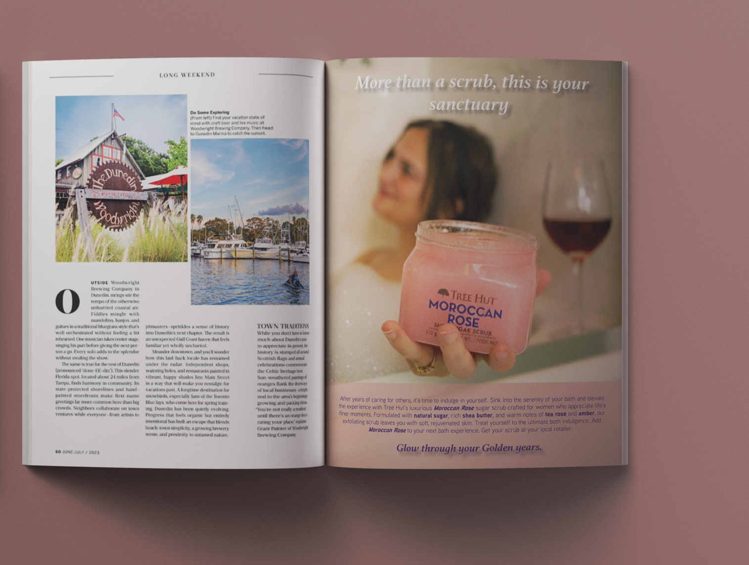 After considering the findings from our research, our agency realized Tree Hut was missing an opportunity with an older consumer market. We chose to target women between the ages 65-75 in Fort Myers, FL. Women in this age demographic are often overlooked in the skincare industry, and our agency felt that we could position Tree Hut as a way for women in this demographic to feel smooth, youthful, and confident with the brand’s sugar scrubs.