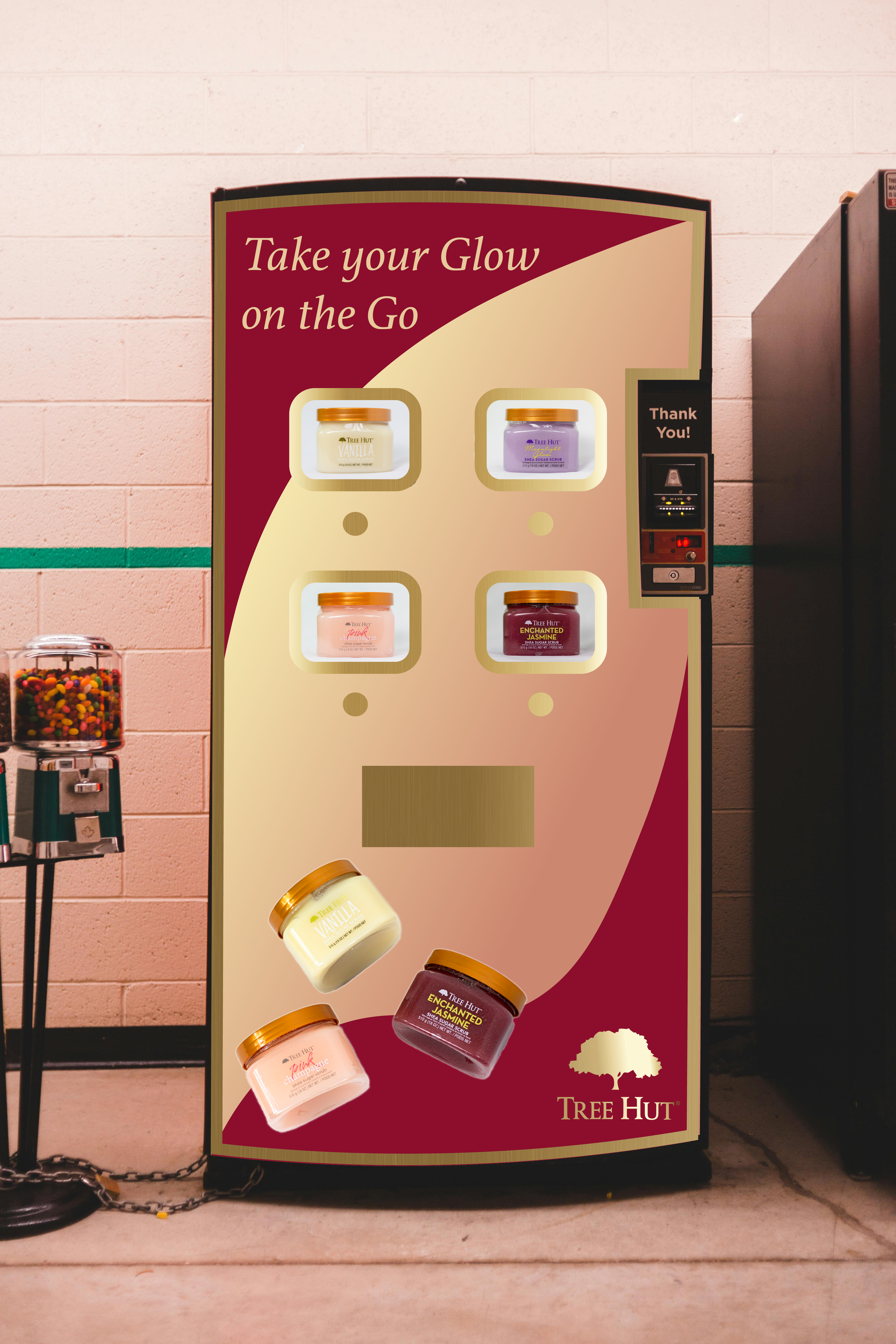 Consumers are able to pick from a menu of different washes that use elements from the scrub such as color and smell to emulate a Tree Hut luxury care experience from beginning to end. The audience is captive with undivided attention on the windshield and by projecting the Tree Hut logo onto it, it creates an unavoidable visual that links the concept of hydration and polishing the car to the exfoliating and moisturizing benefits of the scrub. It effectively disrupts the mundane wash cycle, reinforcing the message that maintenance, whether for their vehicle or their skin, is the key to staying in their prime. The Tree Hut air freshener drives the sensory experience and closes the loop on the path to purchase. Shaped like the iconic shea sugar scrub jar, this air freshener serves as an inexpensive, tangible "take-home" gift, offering immediate value to a demographic that appreciates practical perks. Vending machines will dispense mini-Tree Hut jars at the entrance and exit of the car wash, encouraging consumers to discover their new signature scent.